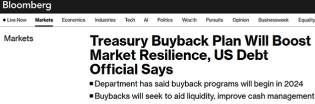 Per this announcement, the Treasury plans to start “regularly purchasing” U.S. Treasuries next year. They claim this will add liquidity and make the Treasury bond market more “resilient”.
