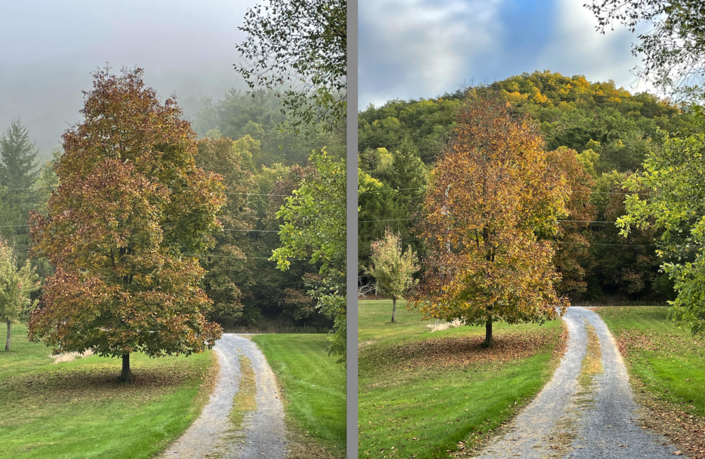 This image tracks Fall’s progression up here. The picture from the left is from last week. The one on the right is from yesterday.