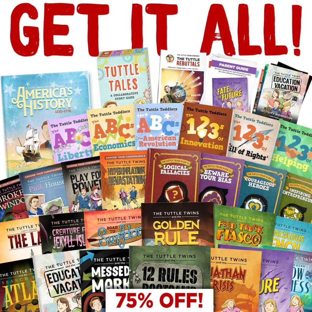 And for children, the solution to educational malpractice is the Tuttle Twins Series.