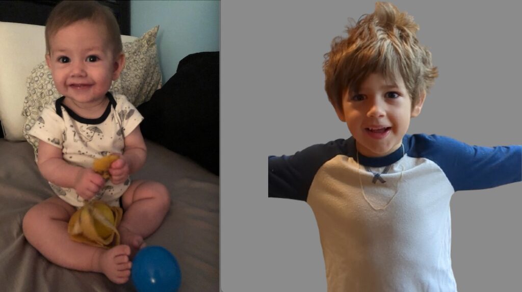 Here’s the picture I posted of him back then. And next to it is a picture of him after opening a gift this morning.